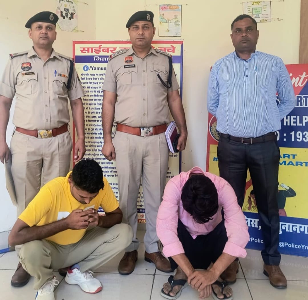 Ravinder Punj, Yamunanagar. पुलिस प्रवक्ता ने जानकारी देते हुए बताया कि पुलिस अधीक्षक कमलदीप गोयल के मार्गदर्शन में कार्य करते हुए थाना साइबर क्राइम की टीम ने ठगी के मामले में जिला पलवल के गांव लखनाका गांव निवासी शोएब व गांव पहाड़पुर निवासी जुबैर को गिरफ्तार किया गया है। दोनों आरोपियों को साइबर क्राइम थाना पुलिस ने कोर्ट में पेश कर रिमांड पर लिया।